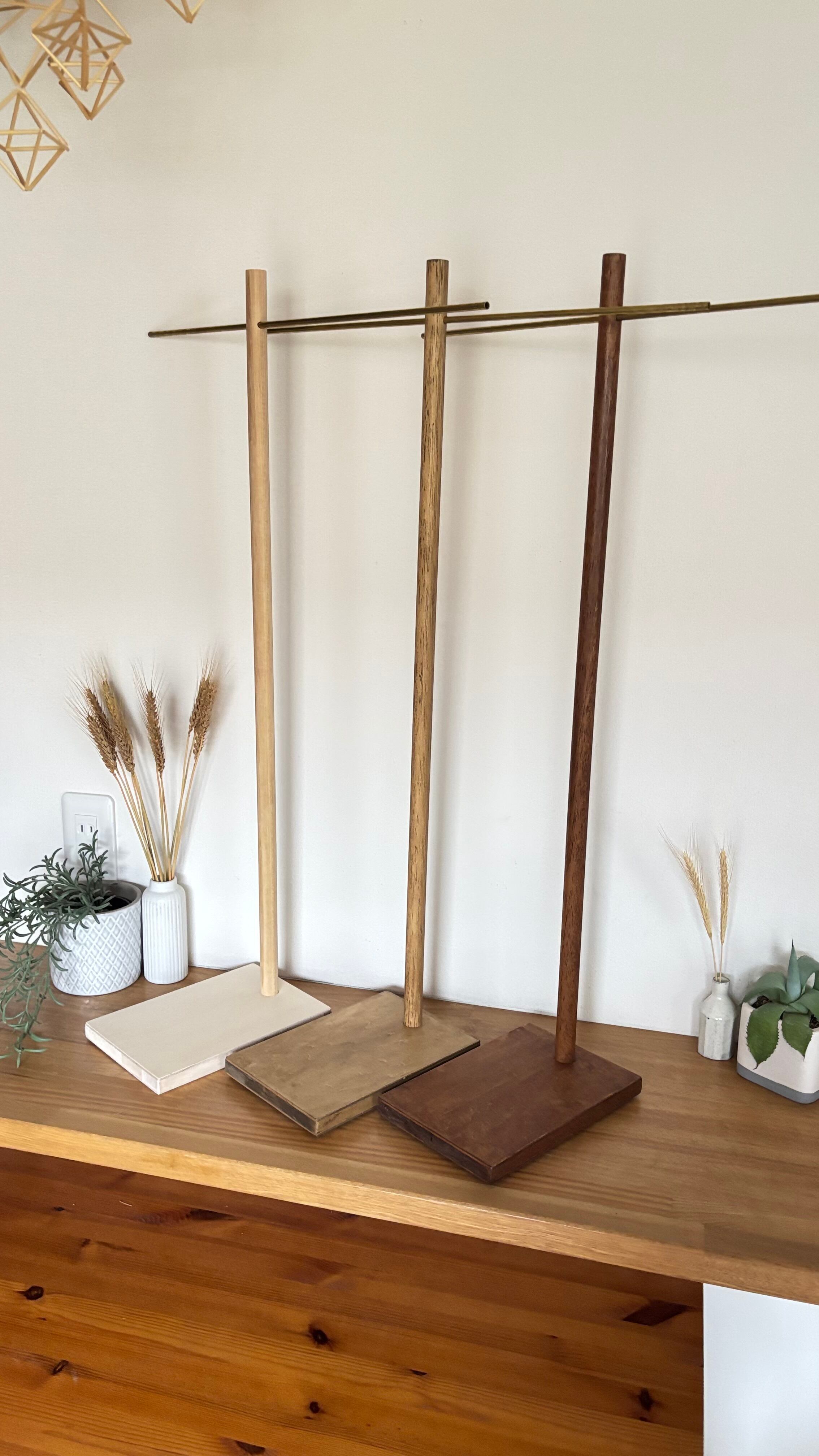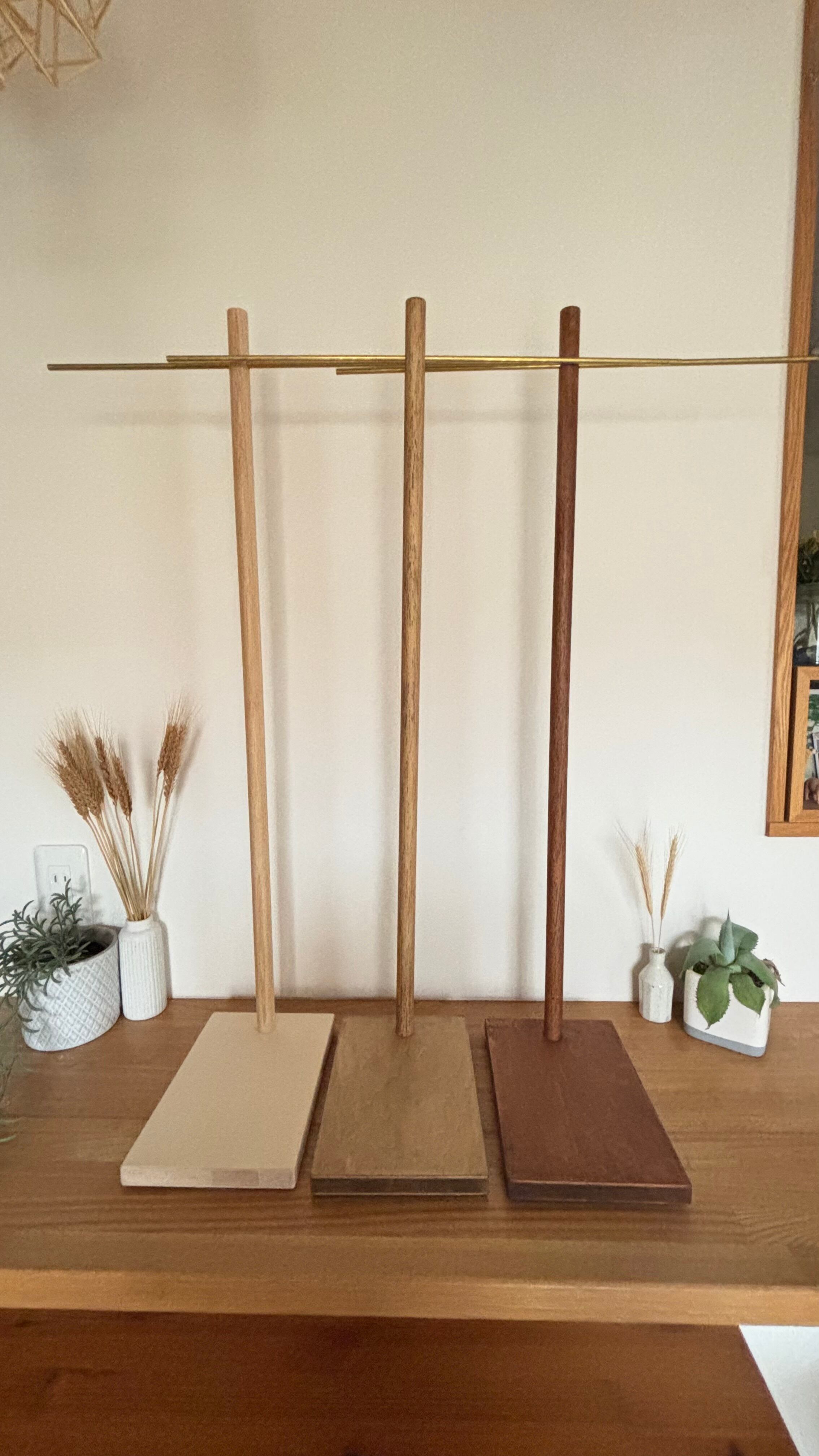 土台・木製支柱・真鍮パイプで構成した