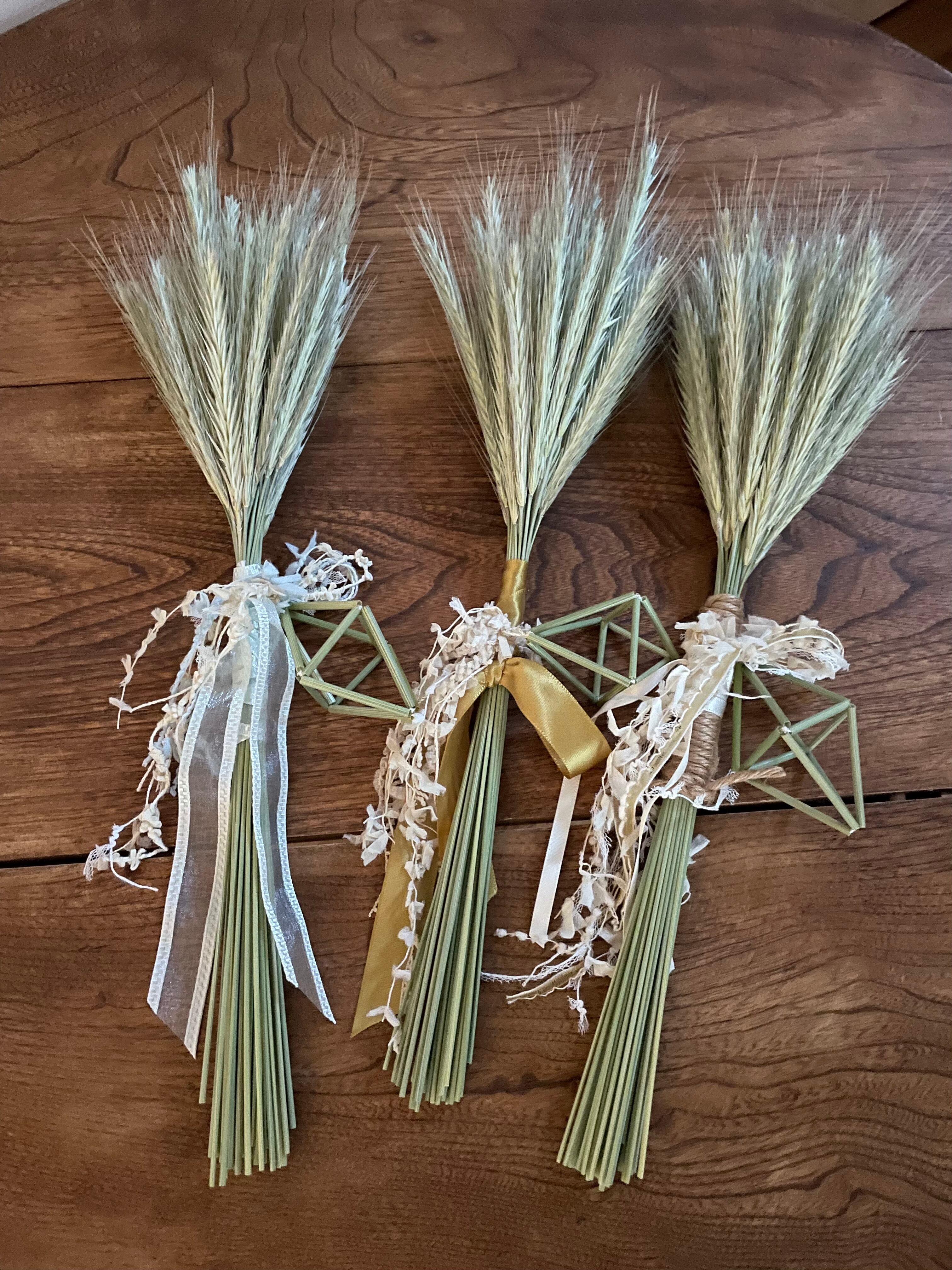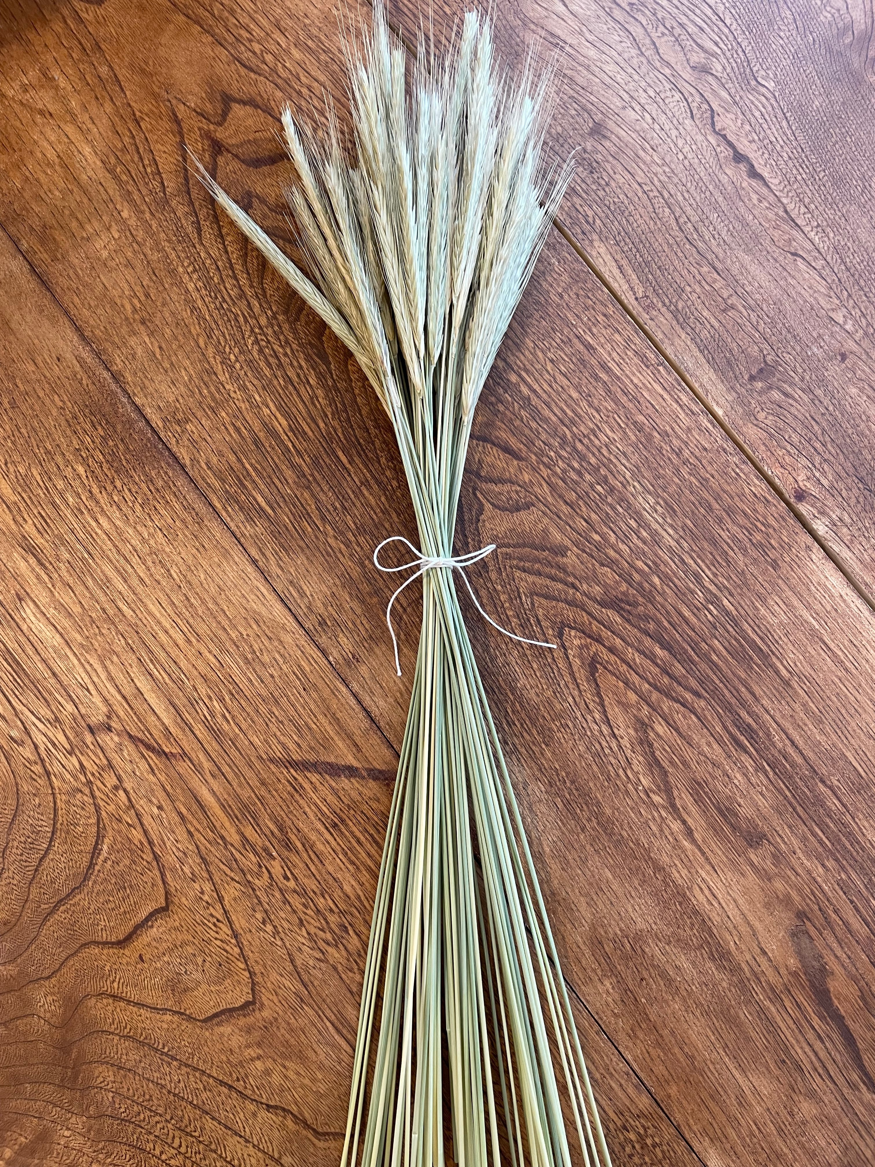 収穫後、節ごとにカット、葉を取り、仕分け、選抜、梱包などすべて手作業で行なっております。丁寧に検品はしておりますが、こちらで見落とした汚れ等ある場合もありますが、ご理解くださいますようお願い致します。また自然素材ですので、個体差があります。特に麦の穂は大きさや形が一本ずつ異なります。色は現在緑色の箇所も、時間の経過と共に自然と薄茶色(クリーム色)に変化します。色が抜けていく変化もお楽しみください。